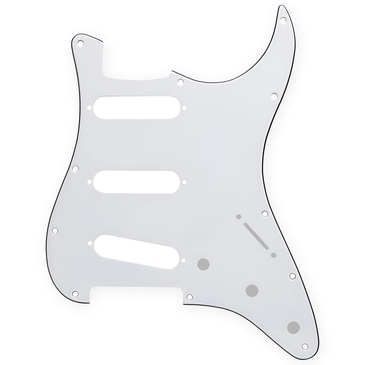 O escudo 3ply, com suas três camadas de materiais, é amplamente utilizado para criar um visual clássico, adicionando um contraste nas bordas, que complementa a estética vintage das Stratocasters. Além disso, essa variação de camadas também confere maior resistência e durabilidade ao escudo, tornando-o mais robusto do que versões de uma única camada.