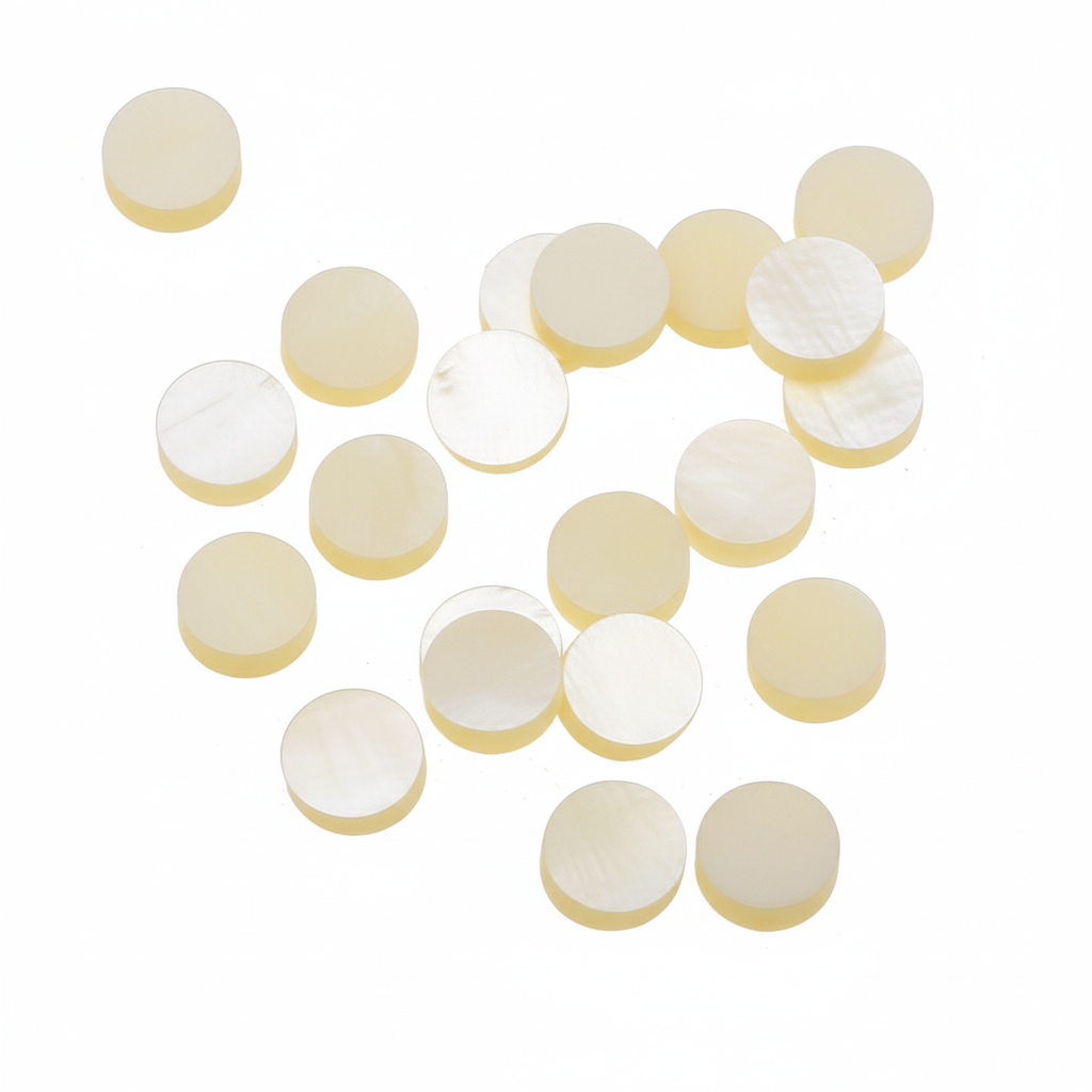 O kit é composto por 10 peças, cada uma com 6mm de diâmetro e aproximadamente 2mm de espessura, proporcionando uma instalação precisa e durável. Tradicionalmente, esses inlays são posicionados nas casas terceira, quinta, sétima, nona, décima segunda, décima quinta e décima sétima da escala, garantindo não apenas orientação visual clara para o músico, mas também um acabamento estético refinado que realça a beleza do instrumento.