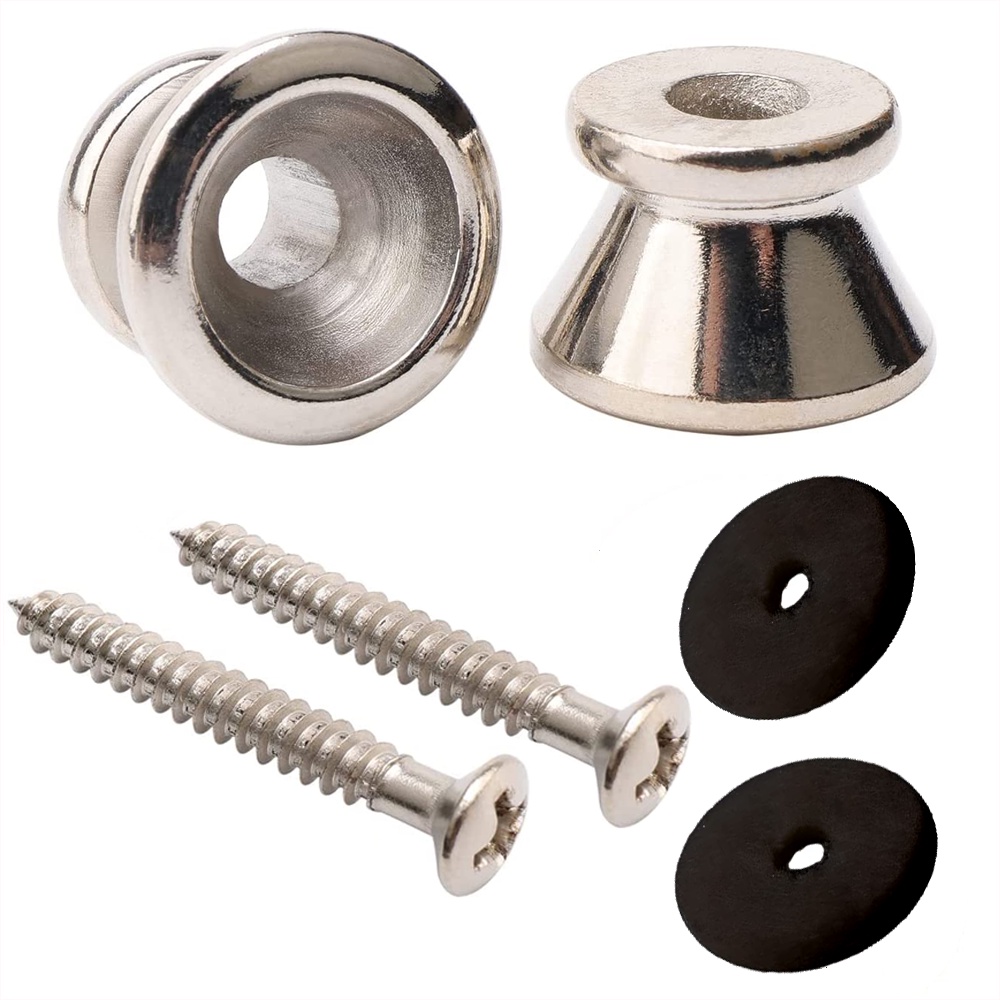 As roldanas cromadas RL01 são ideais para quem busca fixação segura da correia sem comprometer o acabamento do instrumento. O formato cônico garante excelente estabilidade, enquanto as arruelas de borracha protegem a madeira contra riscos e desgastes.